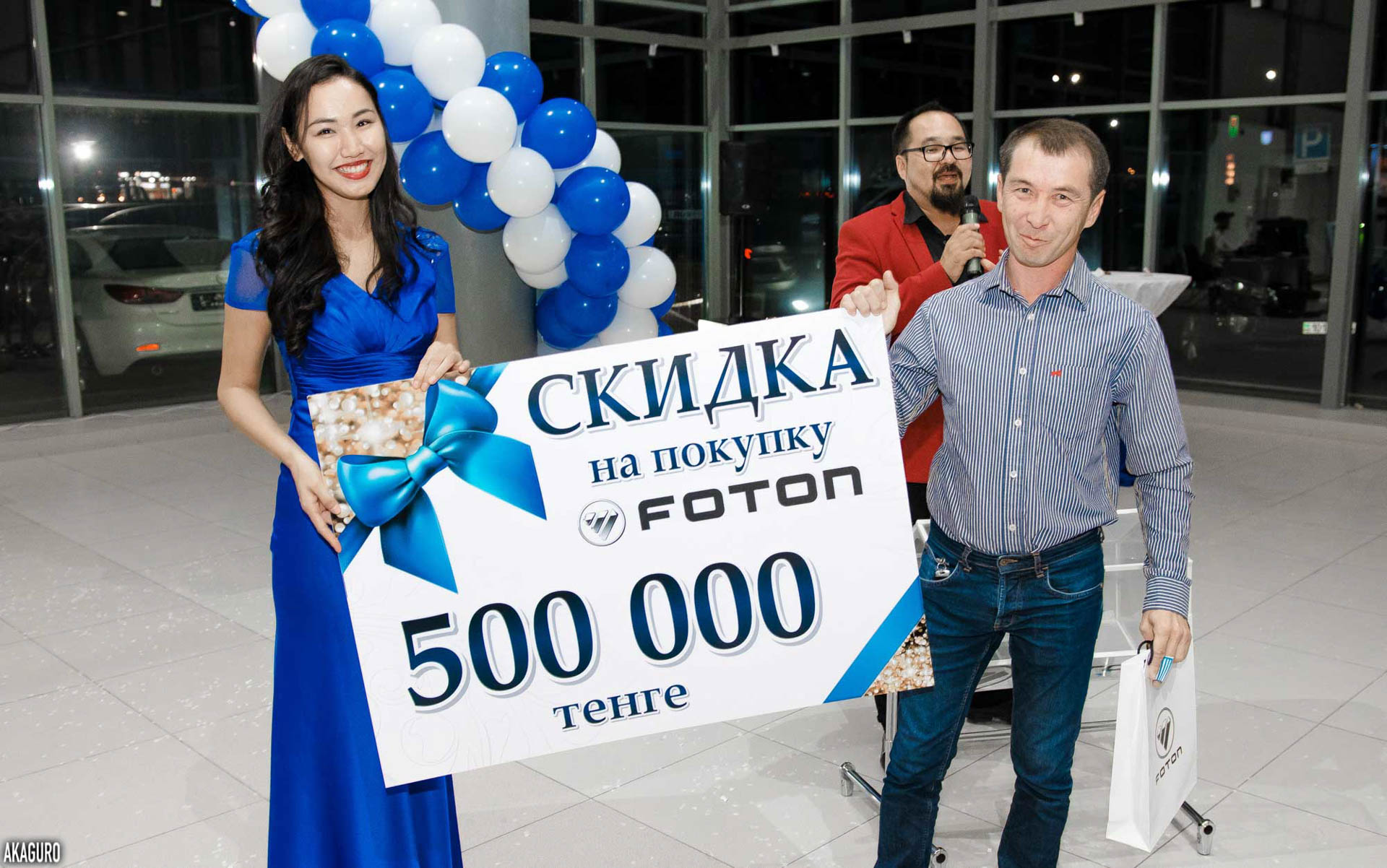Среди гостей проходила лотерея, победители которой получили ценные призы и сертификаты на специальные предложения от дилерского центра. Главным призом вечера стал сертификат на скидку в пол миллиона тенге на приобретение автомобиля Foton. Все посетители Дня открытых дверей в «Рус-Моторс» не только составили личное впечатление об автомобилях Foton, но и получили полезную сувенирную продукцию.